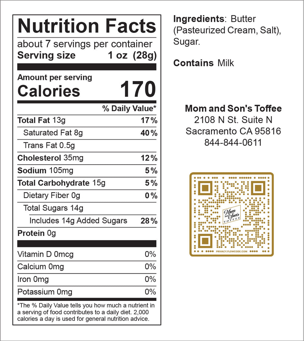 Hand-poured in small batches, this toffee captures the true essence of our family tradition—clean, buttery sweetness that melts in your mouth and keeps you coming back for more.